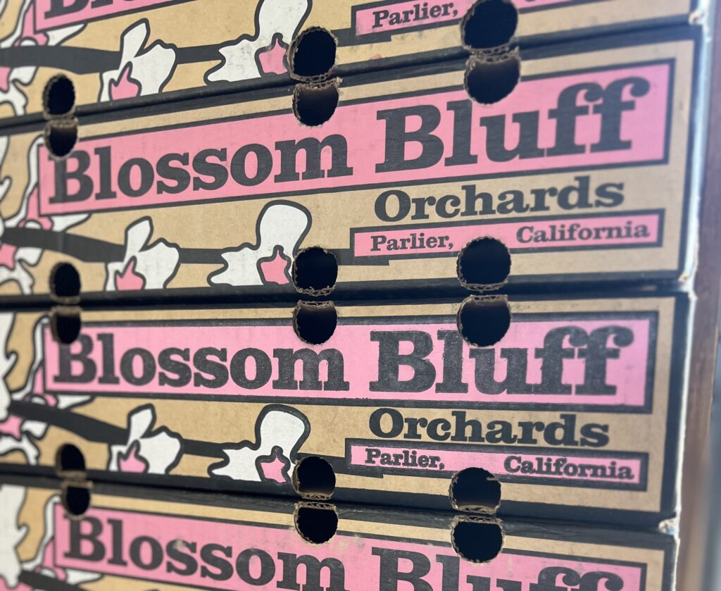 Blossom Bluff recycles and returns the boxes used to pack their fruit and ship to customers back to the packing shed.